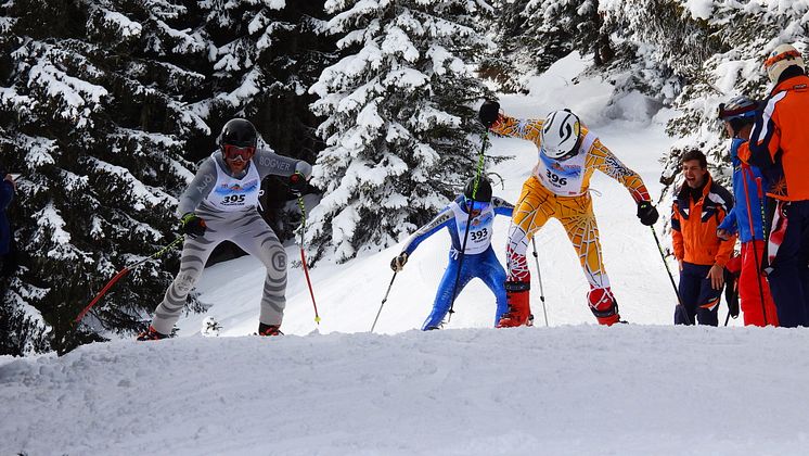 Drei Rennfahrer kämpfen sich die Steigung am Wurzelwald hoch.
