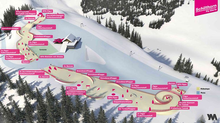 Die KIDSSLOPE am Allmendhubel bietet Kindern ein völlig neues und einzigartiges Schnee-Erlebnis: «Kleine und grosse Kinder, die schon ein wenig Skifahren oder Snowboarden können, finden auf der KIDSSLOPE eine faszinierende Herausforderung», stellt Christoph Egger das neue Angebot vor. Der Schneespass wird auf dieser Piste zum Abenteuer. Dort, wo die glatten Hänge aufhören und Wellen, Tunnel und Slalomparcours starten, wird es erst richtig interessant. Dazu erleben die Kinder eine Spielgeschichte, die aus einer einfachen Abfahrt ein unvergessliches Erlebnis werden lässt. Die Kombination aus Hindernispiste und Inszenierung macht den Reiz dieses neuartigen Winterprodukts aus. «Pronatour» als Gestalter und «Q Parks», bewährter Partner in der täglichen Bearbeitung und Pflege dieser Spezialpisten, unterstützen die Schilthornbahn bei der Umsetzung des neuen Angebots.