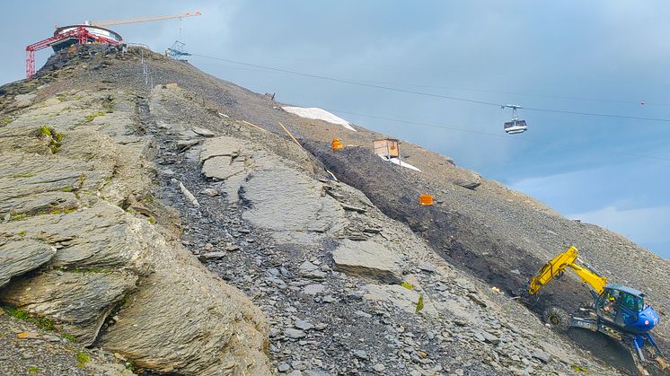 Aktuell ist bereits eine rund 200 Meter lange Rinne ab dem Schilthorngipfel gegraben. Die Schwierigkeit bei dieser Arbeit besteht nicht nur im Umgang mit dem steilen und unwegsamen Gelände, auch die Materiallogistik muss genau durchdacht sein: Sämtliche Transporte ab Stechelberg laufen über die für das Projekt SCHILTHORNBAHN 20XX eigens eingerichteten Materialseilbahn bis auf das Schilthorn. Ab da kommen Helikopter und Raupendumper zum Einsatz. Das Ziel ist es, die Leitungen bis im Herbst vor den ersten grossen Schneefällen fertigzustellen. Die Gesamtkosten für das Projekt Wasserversorgung Birg und Schilthorn betragen rund drei Millionen Franken.